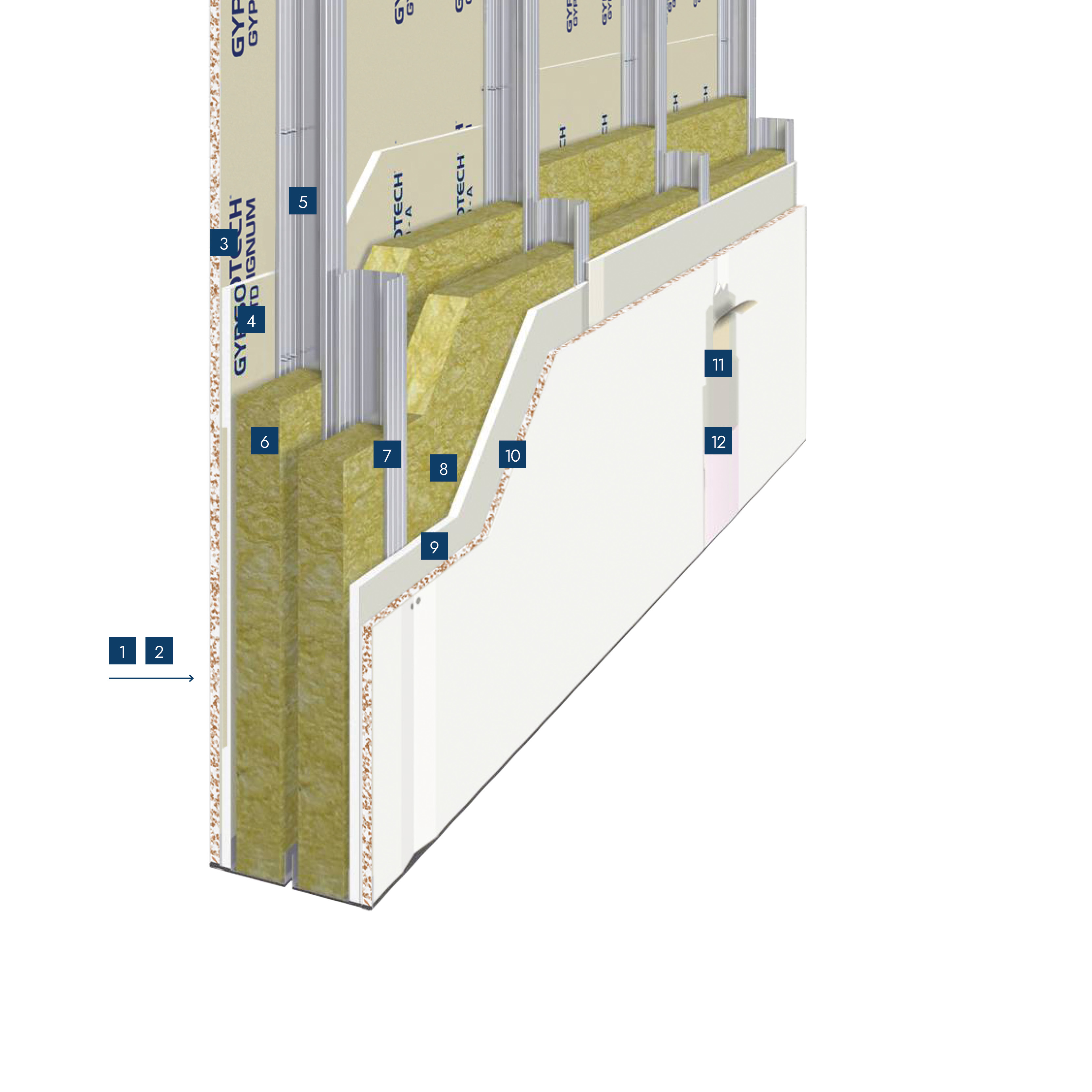 Parete di separazione cavedio per interni – Parete WLA 2×50/VAR LR