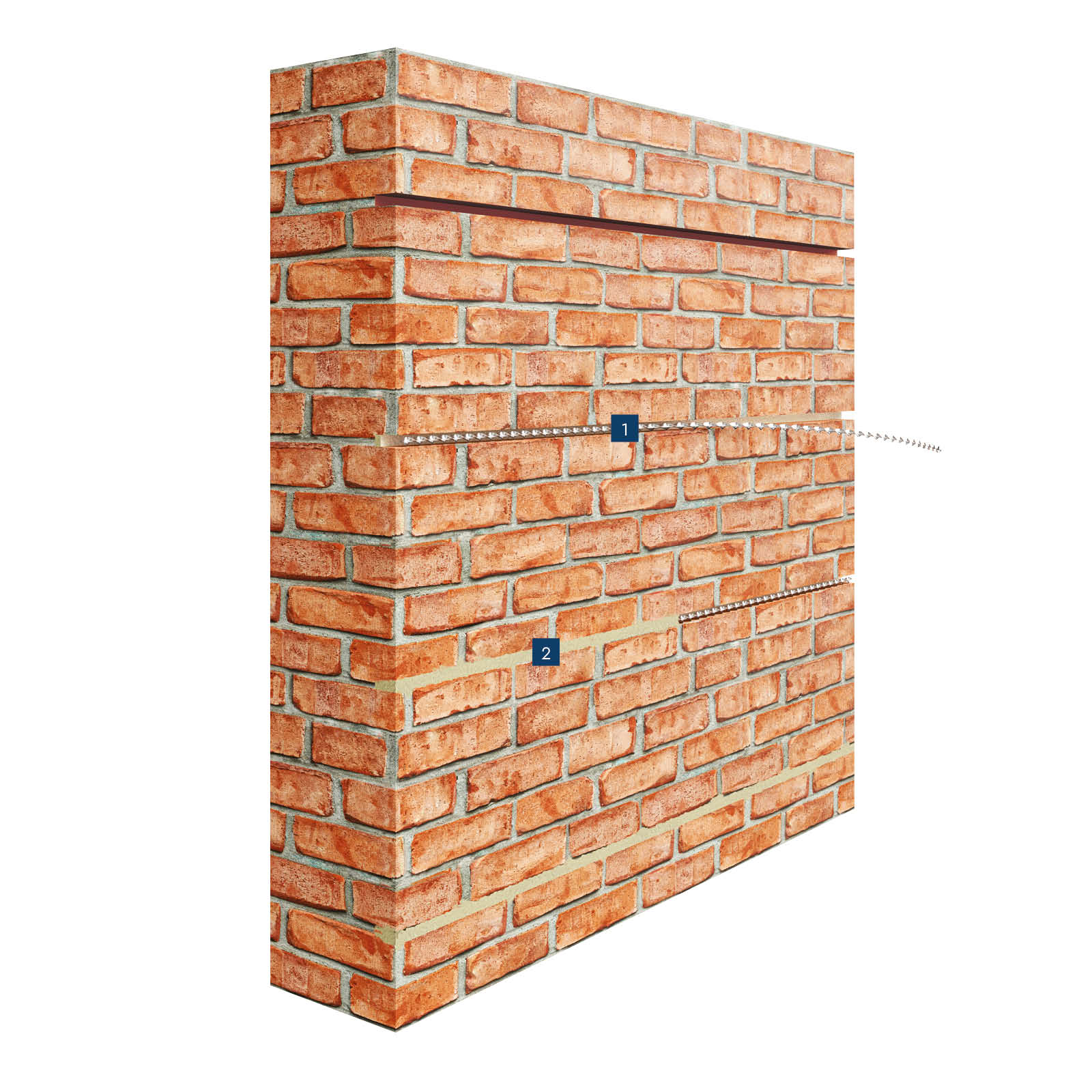 Il sistema è realizzato mediante barre elicoidali in acciaio inossidabile in bobina in abbinamento a malte a base di calce idraulica naturale. La gamma di accessori disponibili agevola la messa in opera e permette un risultato professionale.